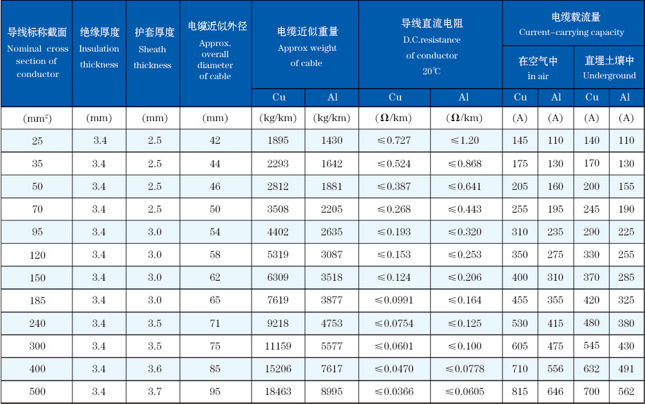 2/Ⅱ 6/10kV 單芯交聯(lián)聚乙烯絕緣,細鋼絲鎧裝,聚氯乙烯護套電力電纜