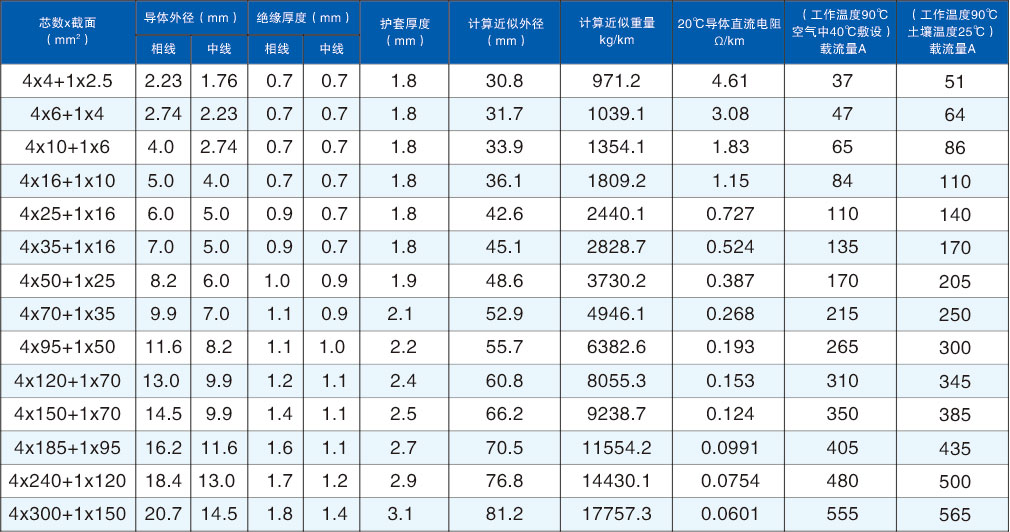 型號:NGA(BTLY) 規(guī)格:4x4+1x2.5-4x400+1x185mm2 額定電壓:0.6/1KV